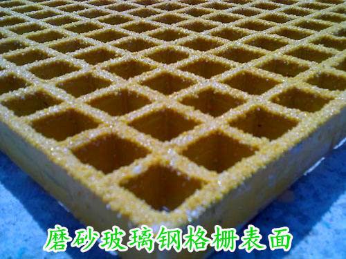 玻璃鋼材質的格柵板的主要工藝為模塑制作工藝,因為在制作時需要人工使用壓模設備對玻纖紗層進行壓擠,使玻纖與樹脂充分融合在一起。所以成品的格柵板表面有一層天然的凹面,具備一定的防滑耐磨功能。本文介紹的是另外一種耐磨性能更好的磨砂玻璃鋼格柵。